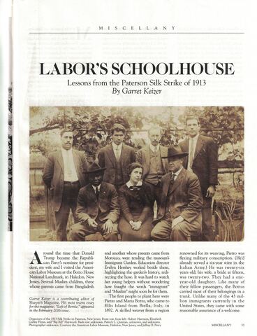 Hubert Harrison, Elizabeth Gurley Flynn, "Big Bill Haywood," and Patrick Quinlan were among the activists at the 1913 Paterson Silk Strike. See Garret Keizer's article, "Labor's Schoolhouse: Lessons from the Paterson Strike of 1913," in the July 2017 issue of Harper's Magazine.