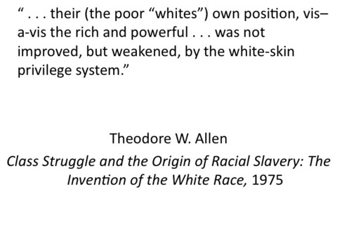 Note: Important Allen insights on class struggle, the origin [note singular] of racial oppression in Anglo-America, "whiteness," "racism," and white privileges are offered